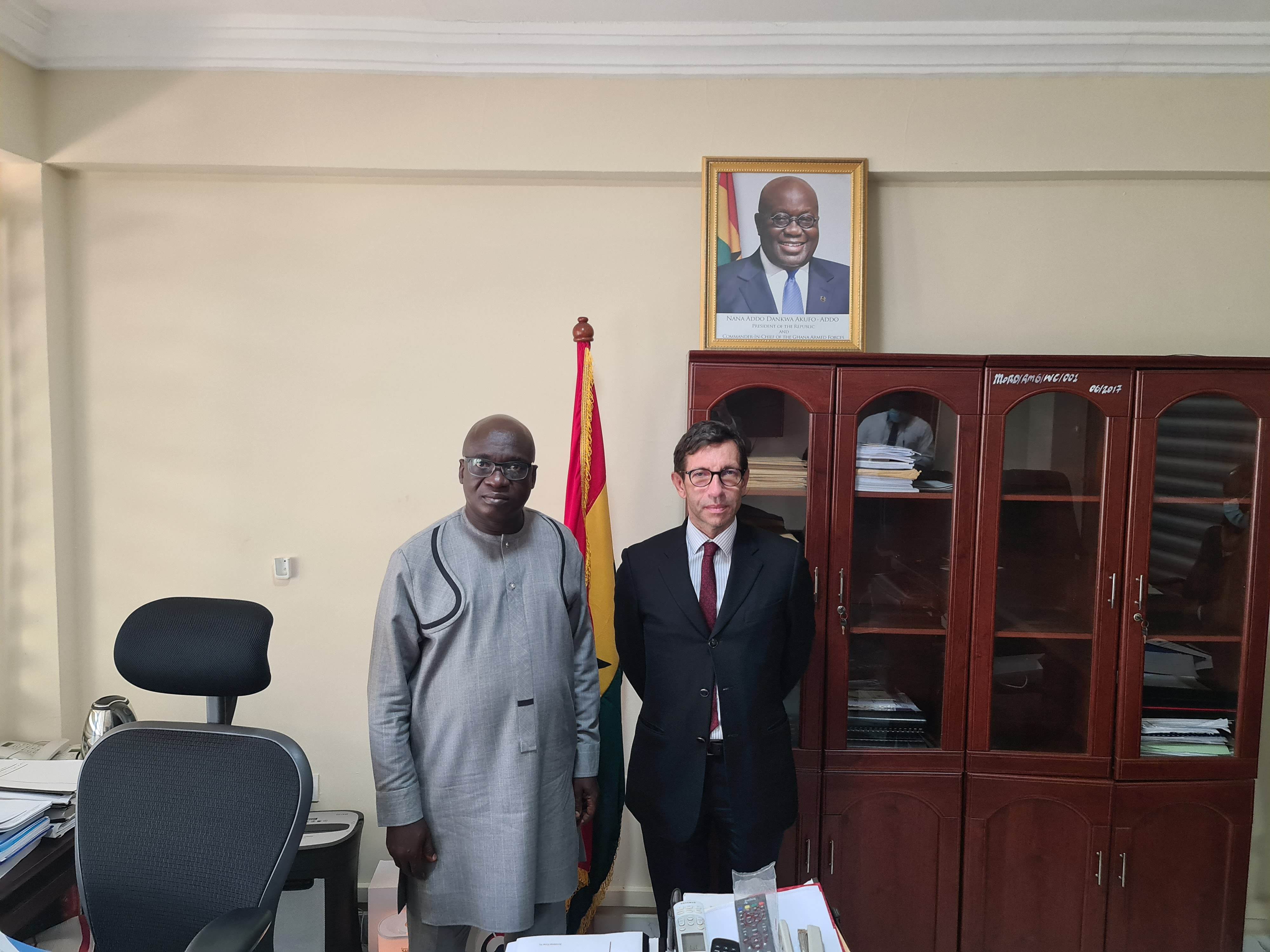 Ambassador met Ghana's deputy Minister of Railways development Mr Kwaku Asante Boateng and his team to discuss ongoing and future cooperation in the field of infrastructure.