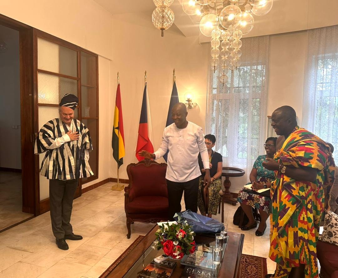 On Wednesday 5 November 2025 Ambassador Pavel Bílek received the Paramount Chief of the Fodome Traditional Area and President of the Fodome Traditional Council Togbega Gbedegbleme Akpatsa II and his accompanying delegation at the Czech Embassy in Accra. Paramount Chief is a former student of Czech Technical University in Prague (České vysoké učení technické v Praze) in Czechia. In a friendly debate they discussed areas of future cooperation.