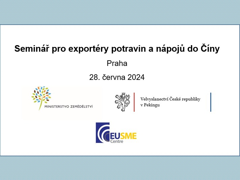 Za účelem podpory českých firem, které vyváží či mají zájem o vývoz potravinářských výrobků na čínský trh, uspořádá Ministerstvo zemědělství ČR ve spolupráci s Velvyslanectvím ČR v Pekingu a EU SME Center dne 28. června 2024 od 10 hodin v prostorách Ministerstva zemědělství seminář, jehož cílem je účastníkům předat aktuální informace o čínském trhu s potravinami a nápoji, představit jeho specifika, aktuální trendy, výzvy a příležitosti. Seminář zároveň firmám zvažujícím Čínu jakožto exportní destinaci poskytne rady pro úspěšný vstup na trh.