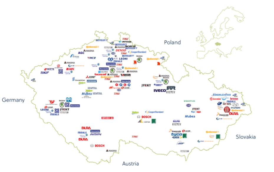 The Czech Republic is home to three large car plants - Volkswagen's unit Skoda Auto, South Korea's Hyundai, and TPCA, a joint venture of Japan's Toyota and France's PSA Peugeot Citroen.