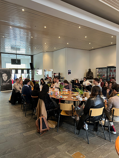 Diskuse velvyslance ČR v Belgii P. Kluckého a stálé představitelky v Politickém a bezpečnostním výboru (COPS) EU J. Látal Znamenáčkové se studenty College of Europe v Bruggách
