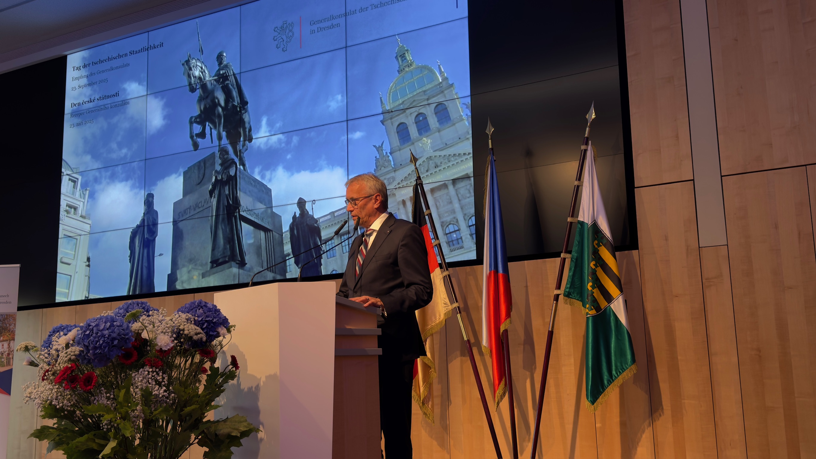 Ministerský předseda Svobodného státu Sasko Michael Kretschmer a ministr pro evropské záležitosti České republiky Martin Dvořák zahájili úvodními vystoupeními slavnostní recepci Generálního konzulátu ke Dni české státnosti, která se uskutečnila dne 23. září 2025 v prostorách Řemeslnické komory v Drážďanech.