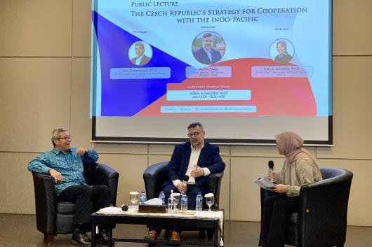 Na Indonéské univerzitě náměstek Tlapa představil Strategii České republiky k Indo-Pacifiku (prezentace v příloze) a diskutoval se studenty o české zahraniční politice během českého předsednictví v Radě EU.
