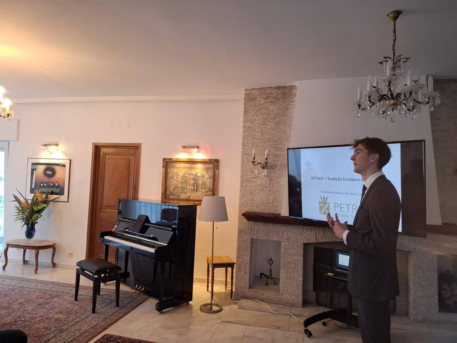 Česká firma, jejíž výroba pian sahá až do roku 1864, se představila před zástupci portugalských kulturních, hudebních a tanečních institucí. Je ctí pro Zastupitelský úřad ČR v Lisabonu moci představit tuto českou značku, která s sebou nese i odkaz klasické české hudby, tolik oceňované na mezinárodních hudebních scénách.
