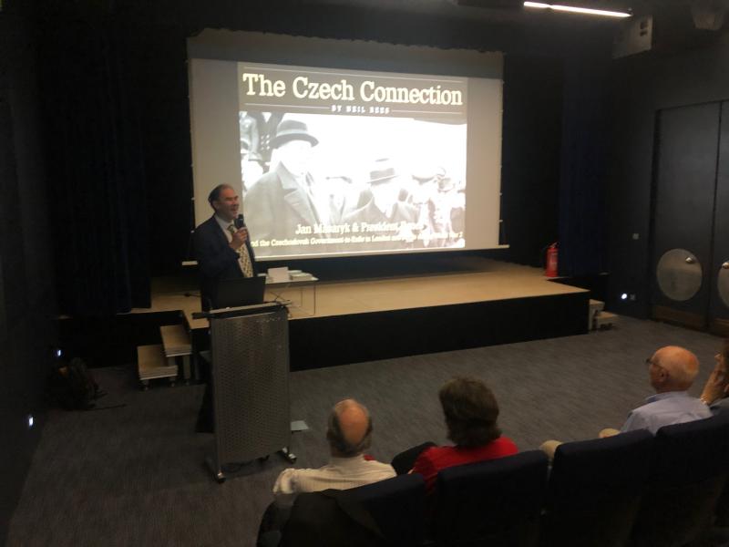 Neil Rees pohovořil o minulosti a životech Edvarda Beneše a dalších osobností československé exilové vlády a o tom, jak přicházeli do kontaktu s britskou vládou i veřejností. Přednáška byla obohacena o dobové fotografie a exempláře knihy N. Reese „The Czech Connection“ pojednávající o dané problematice. Prezentace byla zakončena číší vína, při které měli hosté možnost pohovořit přímo s N. Reesem o jeho bádání a dalších, mnohdy humorných, detailech ze života členu Československé exilové vlády ve Spojeném království.