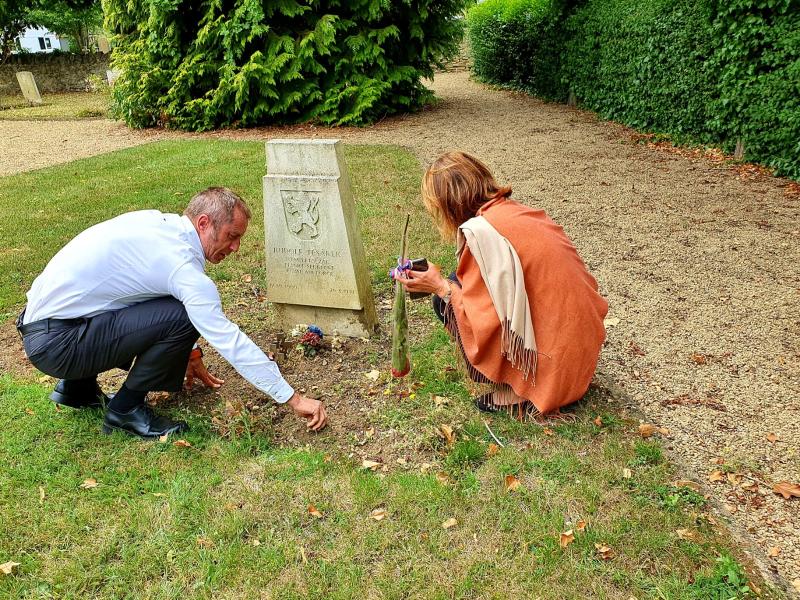 We made our last stop in the small village of Stoke Row near the River Thames, where Sergeant Rudolf Scholz found his final resting place in the garden of the St John the Evangelist Church. He died when the plane in which he had taken off on an anti-submarine mission crashed. His grave, adorned with memorial pebbles, is hidden behind a thicket of hazel and hawthorn at the cemetery’s side gate. If you open the gate and cross a small asphalt road, it leads to a primary school. How many of the students or teachers know that a Czechoslovak soldier is located five metres from the entrance to their school? And why he is lying there? And where Czechoslovakia and the Czech Republic and Slovakia are? I think they would appreciate it if we helped them to answer these questions. In September, after the holidays, we will definitely come here again.