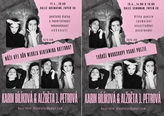 Au cours de la saison 2026, le public pourra à nouveau se réjouir de la venue d’artistes professionnels. Le programme printanier débutera dans le cadre du « printemps poétique » (17 et 18 avril) avec les autrices et artistes de théâtre Alžběta Johanka Petrová et Karin Bílíková. Le vendredi 17 avril, elles présenteront une performance originale, suivie le samedi d’ateliers d’écriture poétique ouverts au public à partir de 15 ans.