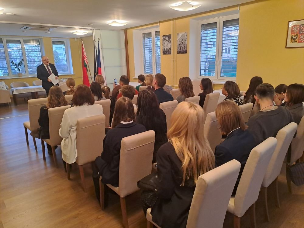 8 снежня 2025 года ў Пасольстве Чэшскай Рэспублікі ў Рэспубліцы Беларусь адбылося ўручыстае ўручэнне ганаровых грамат і медалёў удзельнікам Міжнароднай дзіцячай выставы выяўленчага мастацтва “Лідзіцэ 2025”.