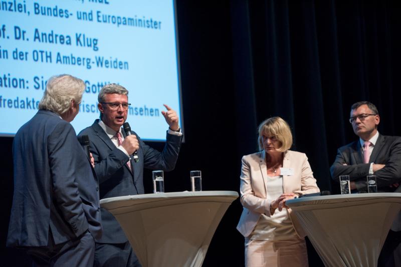 Minister für Industrie und Handel Karel Havlíček, bayerischer Staatsminister Joachim Herrmann und Generalkonsulin Kristina Larischová und weitere 800 Gäste nahmen am 19. Juli in Weiden am 13. Wissenschaftstag der Metropolregion Nürnberg mit dem Motto „Gateway ländliche Räume“ teil. Im Rahmen des Wissenschaftstages sprachen miteinander Wissenschaftler/innen aus verschiedenen Fächern mit der Praxis aus Unternehmen, Institutionen und Gesellschaften. In fünf Panels erörterten sie aktuelle Herausforderungen im Rahmen des Megatrends Digitalisierung in Industrie und Arbeit 4.0.