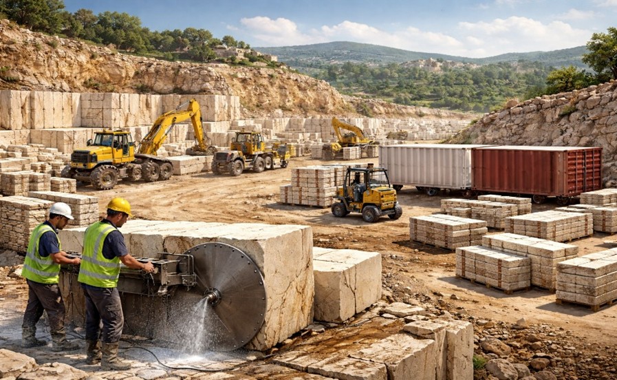 Druhou oblastí, kde se otevírá prostor pro ČR, je export strojů, zařízení a know-how do Palestiny. Místní sektor těžby a zpracování kamene sice disponuje bohatými zdroji a tradičními zkušenostmi, avšak technologicky zaostává – většina provozů je vybavena zastaralými nebo poloautomatickými linkami. Podle dostupných údajů je 85 % výrobních kapacit pouze poloautomatických a jen 15 % plně automatizovaných. Těžba v lomech a následné zpracování bloků tak mnohdy probíhá s nižší efektivitou, vyššími ztrátami materiálu a také s většími riziky pro dělníky i životní prostředí (prašnost, hlučnost). Modernizace tohoto odvětví je pro Palestinu klíčová, aby si udržela konkurenceschopnost a zvýšila přidanou hodnotu své produkce, místo exportu surových bloků chce více vyvážet hotové produkty.