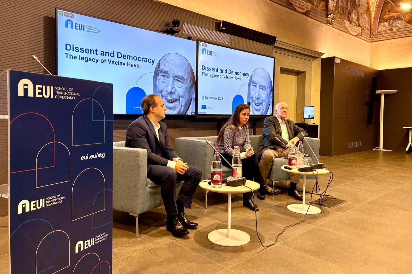 Na kulatém stolu s názvem “ Disent a demokracie” věnovaném odkazu Václava Havla vystoupil prof. Filip Kostelka z katedry politických a sociálních věd EUI, bývalý poradce V. Havla a emeritní profesor Science Po v Paříži Jacques Rupnik a dr. Eva Krejčová z Univerzity Lausanne. Řečníci zde hovořili o životních peripetiích Václava Havla, jeho dílu a filozofii, odkazu a inspiraci pro moderní dobu. V příspěvku E. Krejčové bylo reflektováno vidění V. Havla na jedné straně Čechy, na straně druhé jak jej na vnímá svět.