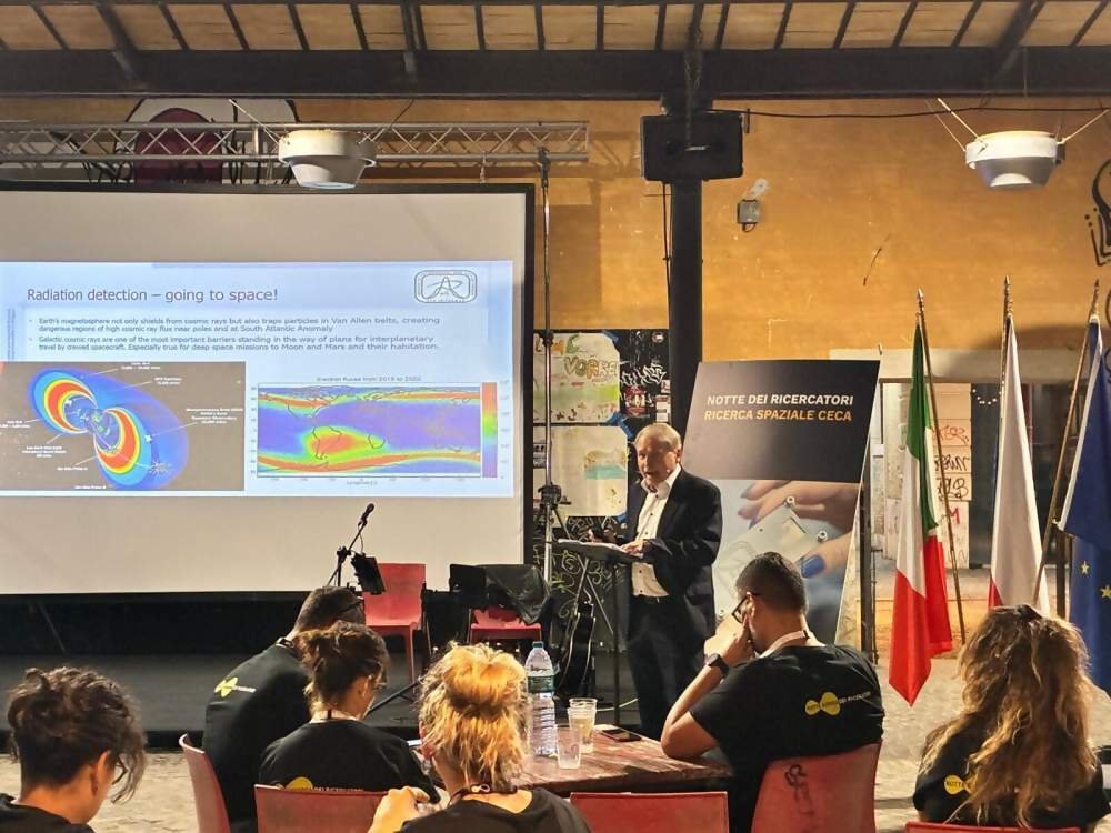 Evropská noc vědců je v Itálii velmi známá a medializovaná akce pro popularizaci vědy, výzkumu a technických a přírodních oborů, které se účastní tisíce zájemců včetně dětí a studentů. Česká republika dostala exkluzivní možnost zúčastnit se této akce v letošním roce a prezentovat se jako vyspělá země s vyspělou vědeckou základnou. Českou vědu výborně reprezentoval Ústav experimentální a aplikované fyziky ČVUT, který na akci představil praktické výsledky svého výzkumu v částicové a jaderné fyzice, jako jsou detektory radiace pro Mezinárodní vesmírnou stanici (ISS), Evropskou kosmickou agenturu, NASA a italskou společnost D-Orbit. Český stánek navštívily stovky lidí, kterým ředitel Ústavu experimentální a aplikované fyziky Ivan Štekl, Robert Filgas a David Netušil vysvětlovali vesmírnou radiaci a funkci přístrojů. Český stánek v úvodu akce představili ředitel Českého centra Robert Mikoláš a vedoucí obchodně-ekonomického úseku Petr Havlík.