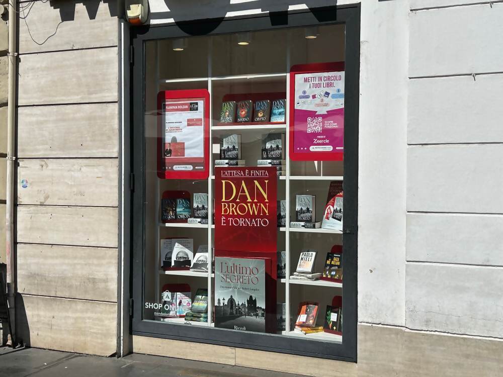 Knihkupectvím v Říme dominuje kniha Dana Browna „Tajemství všech tajemství“, jejíž děj se odehrává v Praze. V italštině „L´ultimo Segreto“.