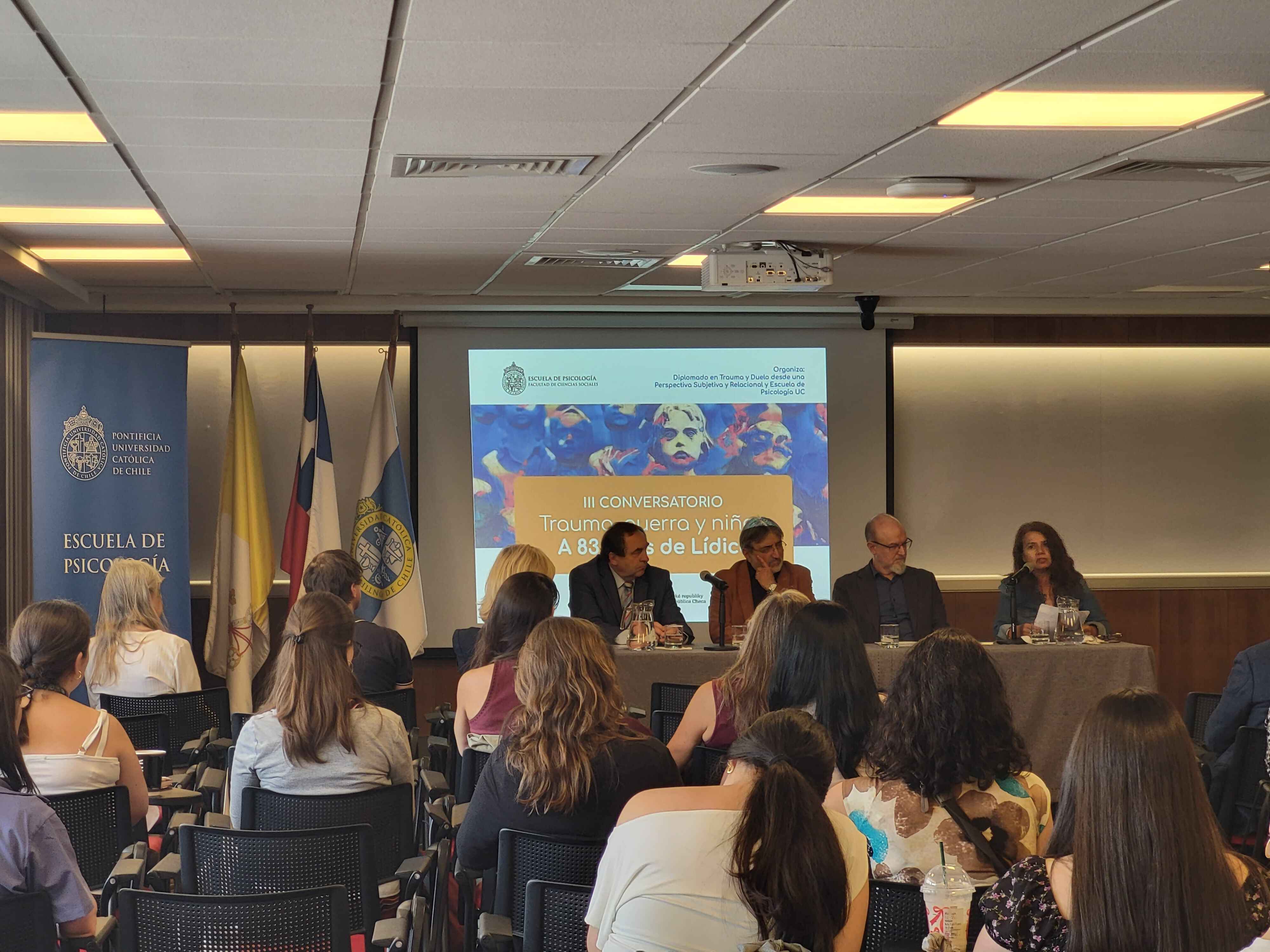 V rámci půldenních přednášek a diskusí vystoupili vyučující z katedry psychologie, odborníci na témata dětského traumatu a zármutku coby důsledek prožitých válek, diktatur a ozbrojených konfliktů. Právě lidická tragédie je pro celý svět silným mementem nejen kvůli rozsahu násilí vůči českým dětem, ale slouží také jako základ pro reflexe traumat, která zůstávají v paměti národů. Velvyslanec Pavel Bechný nastínil v rámci svého vystoupení lidické události v kontextu druhé světové války a připomněl jejich silný dopad v tehdejším Československu a také v zahraničí. O tehdejší celosvětové solidaritě s malou středočeskou obcí svědčí dodnes skutečnost, že se vedle mnoha pietních míst a památníků objevují Lidice coby názvy ulic, části měst a ženská vlastní jména. Také v centru Santiaga de Chile byl Lidicím věnován památník česko-chilského umělce Filipa Carrasco, který představuje dětskou hru tzv. skákání panáka a který připomíná nevinné dětské oběti. Každoročně se u památníku koná ve spolupráci velvyslanectví a krajanského spolku Círculo Chileno Checo pietní akt, který svědčí o tom, že lidická tragédie nebude nikdy zapomenuta.