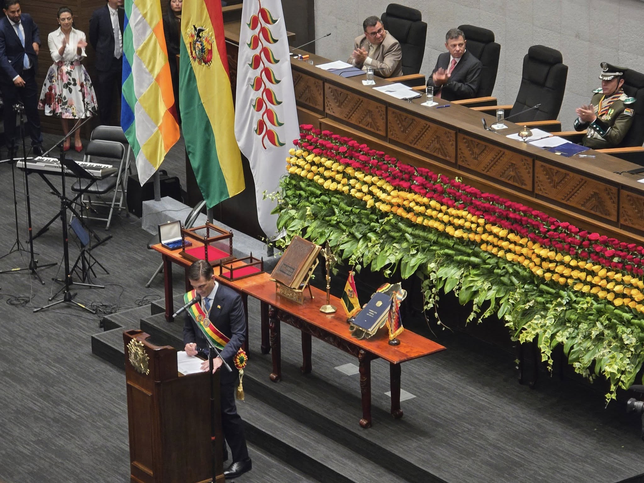 Posteriormente, el Presidente Rodrigo Paz Pereira también prestó juramento y recibió la medalla presidencial. En su primer discurso presidencial, reiteró que Bolivia se encuentra en el umbral de grandes cambios, confirmó el cambio en la orientación de la política exterior y priorizó la resolución de la prolongada crisis económica del país, la reforma del sistema judicial, la lucha contra la corrupción y la apertura del país al mundo.