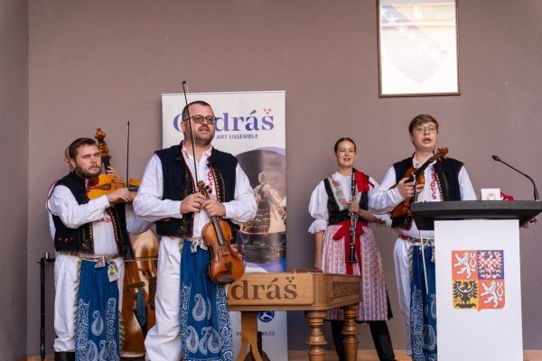 Příjemnou atmosféru zajistil vojenský orchestr „Ondráš“, slavnost zpestřily také ručně vyráběné sklářské výrobky firmy Rückl.