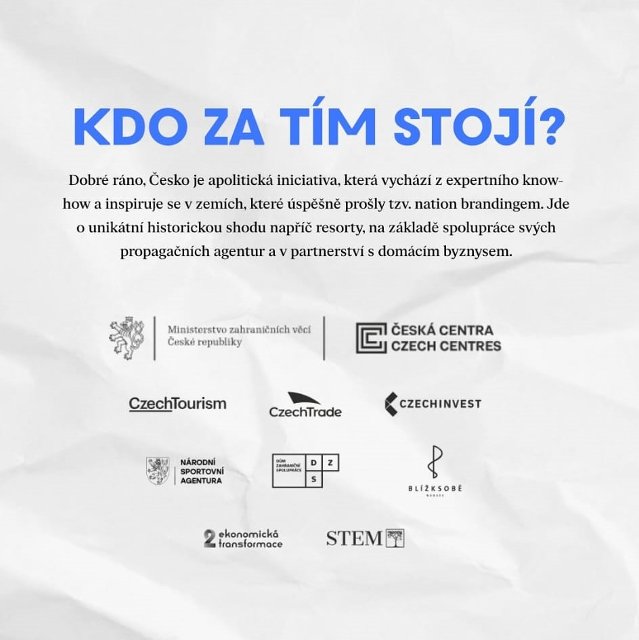 Jak zní současný příběh o Česku? Jak bychom chtěli, aby nás svět vnímal? Právě na to hledá odpovědi iniciativa Dobré ráno, Česko, na které spolupracuje Ministerstvo zahraničních věcí ČR s Českými centry a dalšími agenturami státu i byznysovou sférou.