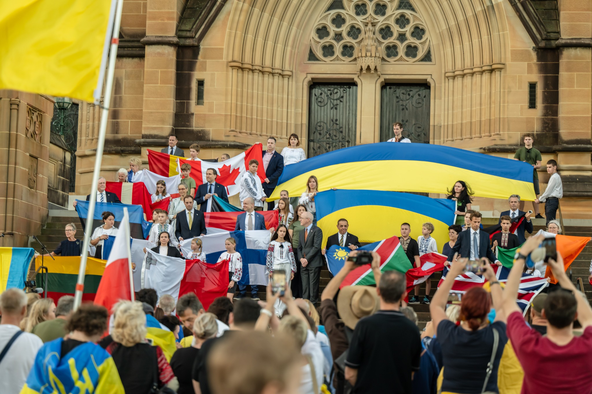 The gathering took place in St Mary's Cathedral Square in the centre of Sydney. Cardinal Mykola Bychok, Deputy Minister of Foreign Affairs of Australia Matt Thistlethwaite, the Minister for Multiculturalism of NSW Stephen Kamper and the Ambassador of the Ukraine to Australia H.E. Vasyl Myroshnychenko were some of the notable speakers at the event.