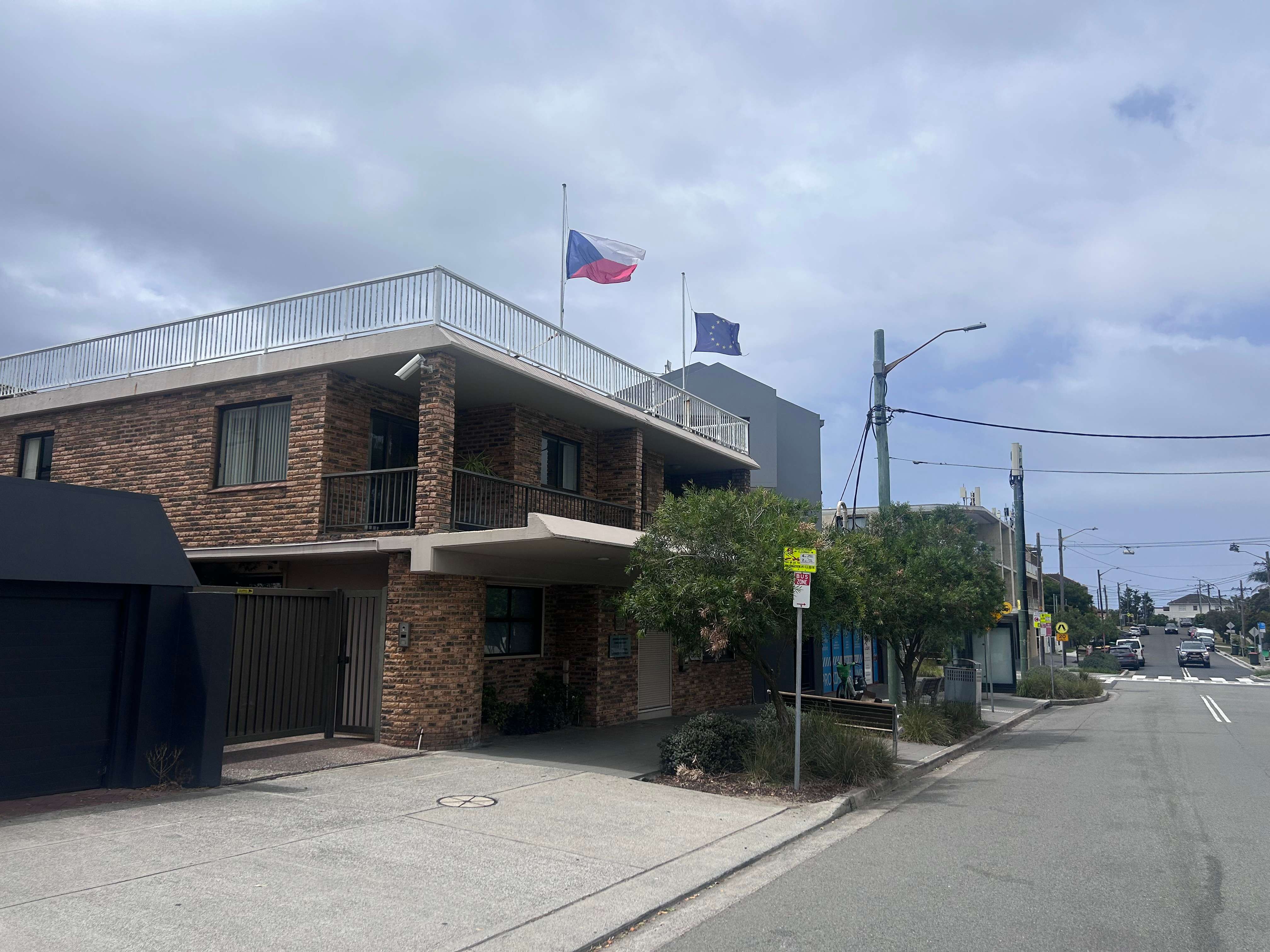 Tragic shooting at Bondi Beach, Sydney - flags flying half-mast at the Consulate General of the Czech Republic in Sydney in mourning.