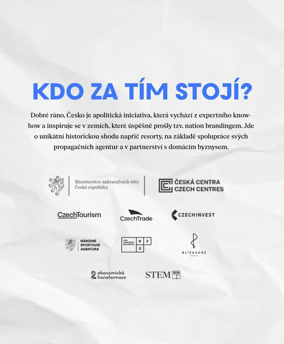 Jak zní současný příběh o Česku? Jak bychom chtěli, aby nás svět vnímal? Právě na to hledá odpovědi iniciativa Dobré ráno, Česko, na které spolupracuje Ministerstvo zahraničních věcí ČR s Českými centry a dalšími agenturami státu i byznysovou sférou.
