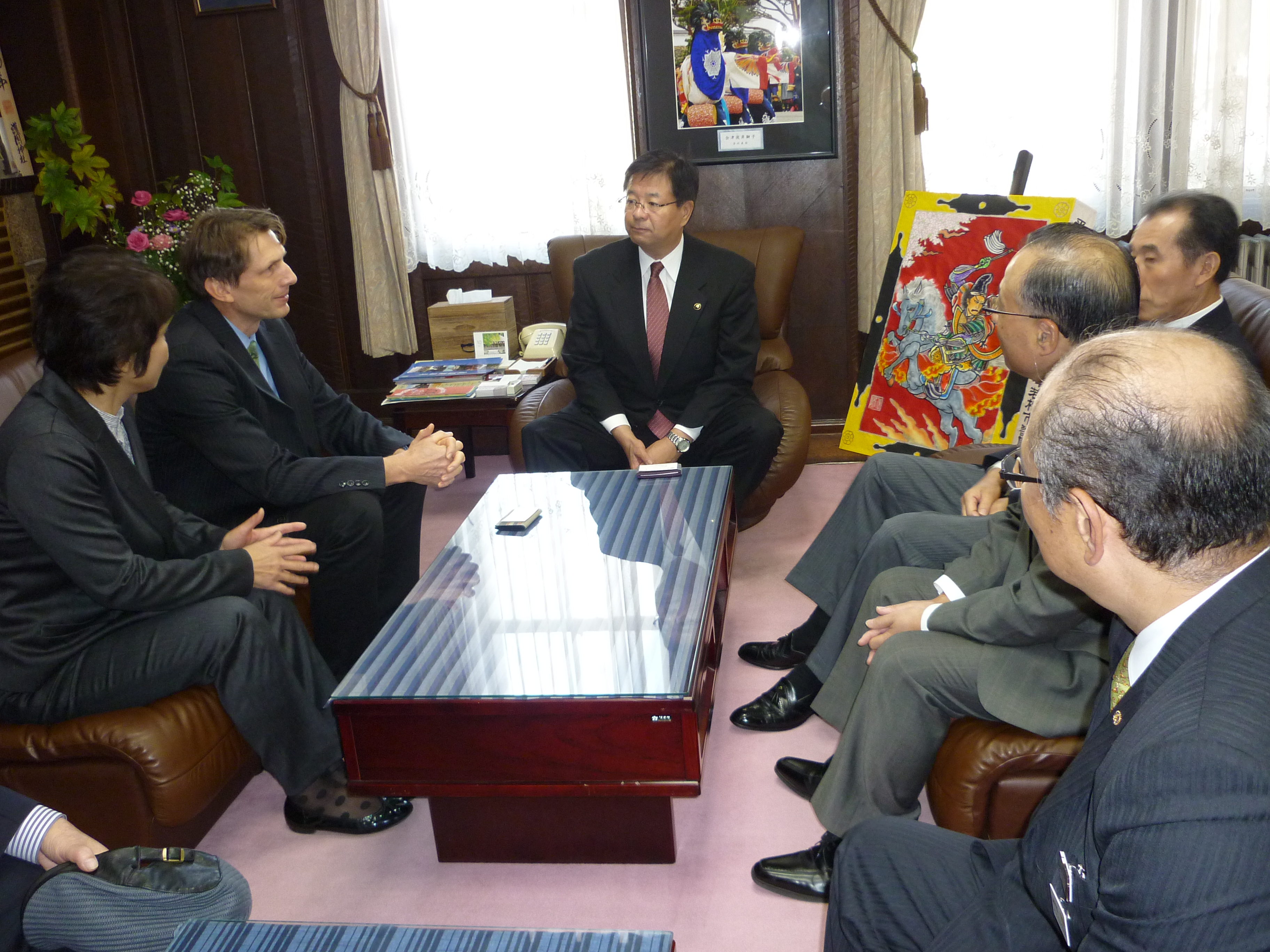 M. Sauer se rovněž sešel se starostou města Muroi Shoheiem. V rozhovoru ozřejmil nejvýznamnější aktivity mezi ČR a Japonskem, zdůraznil vysoký počet japonských investorů v ČR a aktivity českých firem v Japonsku.