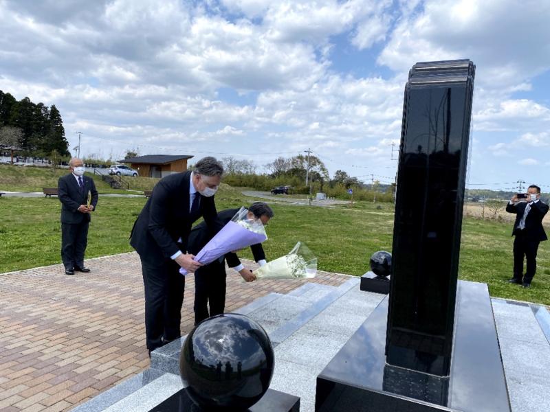 Velvyslanec ČR v Japonsku položil rovněž kytici k pomníku obětí fukušimské tragédie, který se nachází ve městě Namie a navštívil muzeum Denshokan. Zde se setkal se starostou města Futaba, panem Shirou Izawa. Město Futaba, ležící ve vzdálenosti cca 10 km od jaderné elektrárny Fukušima I, patřilo spolu s městem Namie k nejvíce zasaženým místům. Zůstává stále neosídleno.