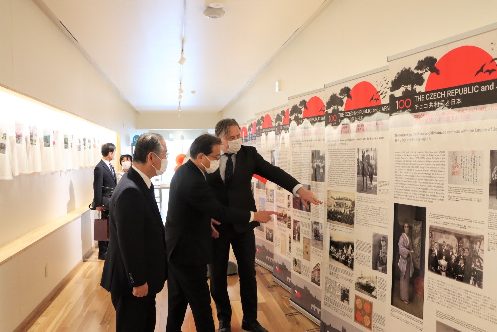 Účastníci setkání společně navštívili panelovou prezentaci připravenou k 100. výročí navázání diplomatických vztahů mezi Českou republikou a Japonskem připomínající dlouholetou bohatou historii vzájemných česko-japonských vztahů.