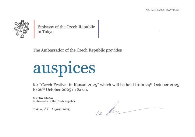 「チェコフェスティバル2025 in 関西」を後援 16.09.2025 / 01:15 | Aktualizováno: 16.09.2025 / 01:19 駐日チェコ共和国大使は、2025年10月24日から26日にかけて大阪府堺市のMinaさかいで行われる「チェコフェスティバル2025 in 関西」を後援しています。 「チェコフェスティバル2025 in 関西」を後援