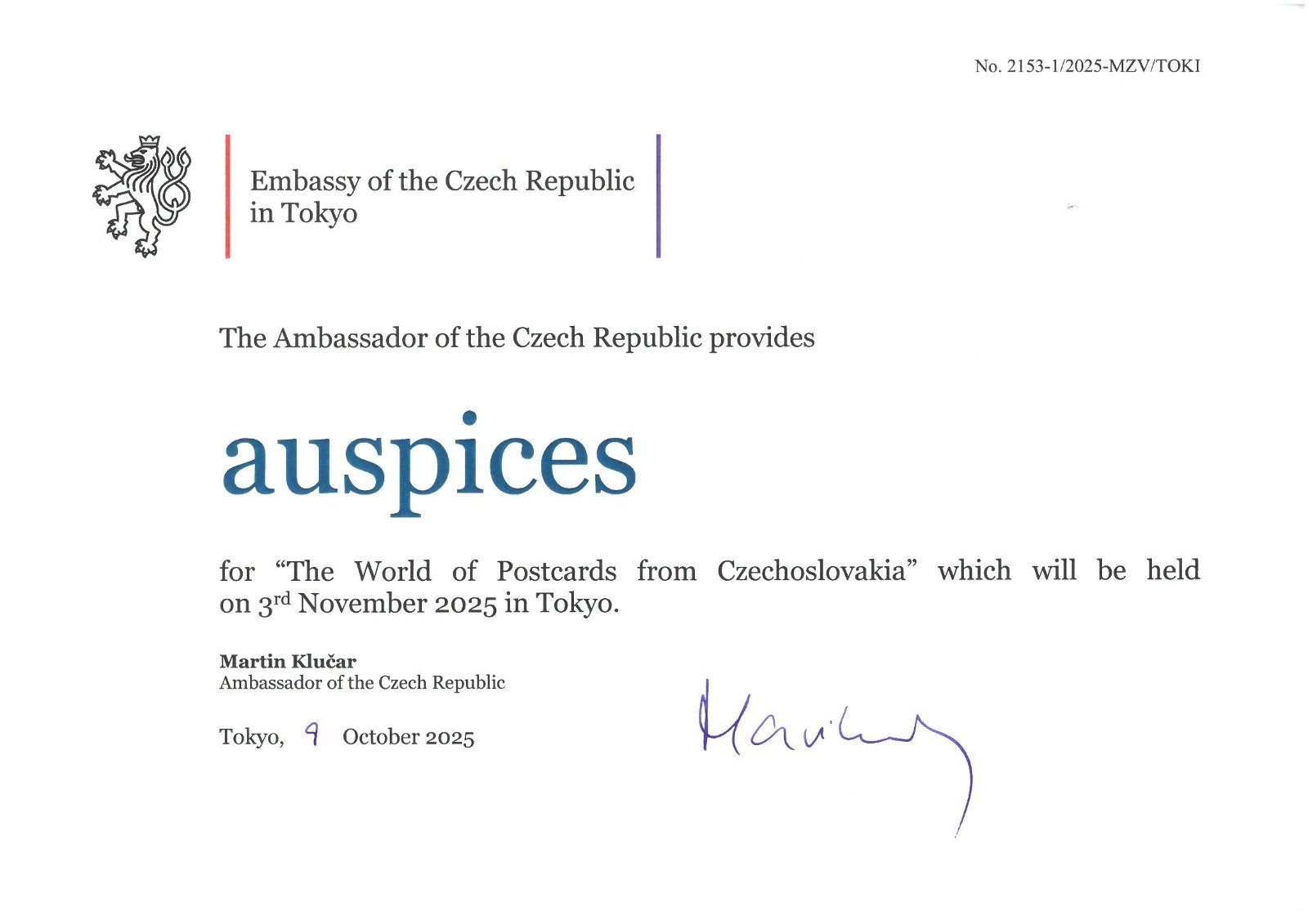 講演会「チェコスロヴァキアの絵葉書の世界」を後援 10.10.2025 / 03:13 | Aktualizováno: 11.10.2025 / 03:18 駐日チェコ共和国大使は、2025年11月3日に東京都新宿区の早稲田奉仕園で行われる講演会「チェコスロヴァキアの絵葉書の世界」を後援しています。 講演会「チェコスロヴァキアの絵葉書の世界」を後援