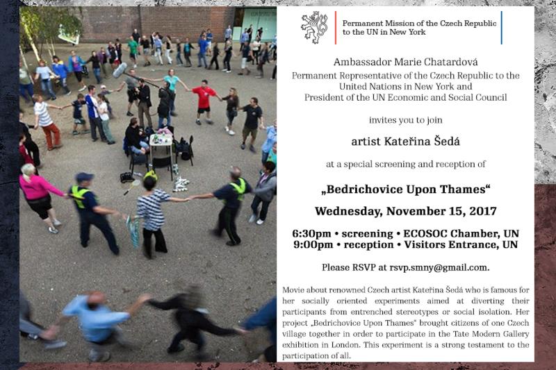 Movie “Bedrichovice Upon Thames” will be screened on Wednesday, November 15, 2017 at 6:30 pm in the ECOSOC Chamber at the UN Headquarters. Screening is to be followed by a reception at the UN Visitors Entrance. Please RSVP to rsvp.smny@gmail.com.