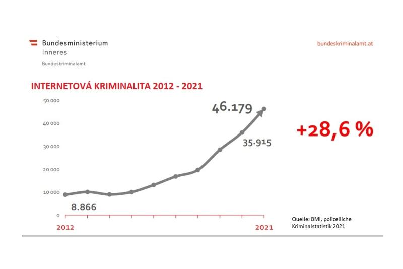 Podle informací rakouského ministerstva vnitra bylo v loňském roce nahlášeno 46 179 případů kybernetické kriminality, tedy o třetinu více, než v roce 2020. Data jasně ukazují, že se již dávno nejedná o ojedinělé případy, ale o masový problém. Zatímco v roce 2019 bylo kybernetickou kriminalitou konfrontováno pouhých 11,7 % rakouských firem, v loňském roce se již podíl napadených firem pohyboval mezi 60 až 70 %. Každému pátému napadenému subjektu byly přitom způsobeny finanční škody, v některých případech přesahující 500 tis. EUR.