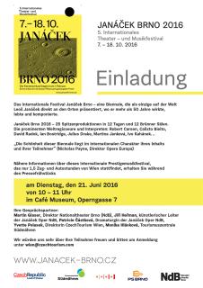Lieben Sie klassische Musik? Ja. Und sagt Ihnen der Name Leos Janáček etwas? Egal, ob Sie diese zweite Frage mit ja oder nein beantworten … erlauben Sie uns, Sie zu dem Pressefrühstück am 21.6.2016 ins Cafe Museum einzuladen.
