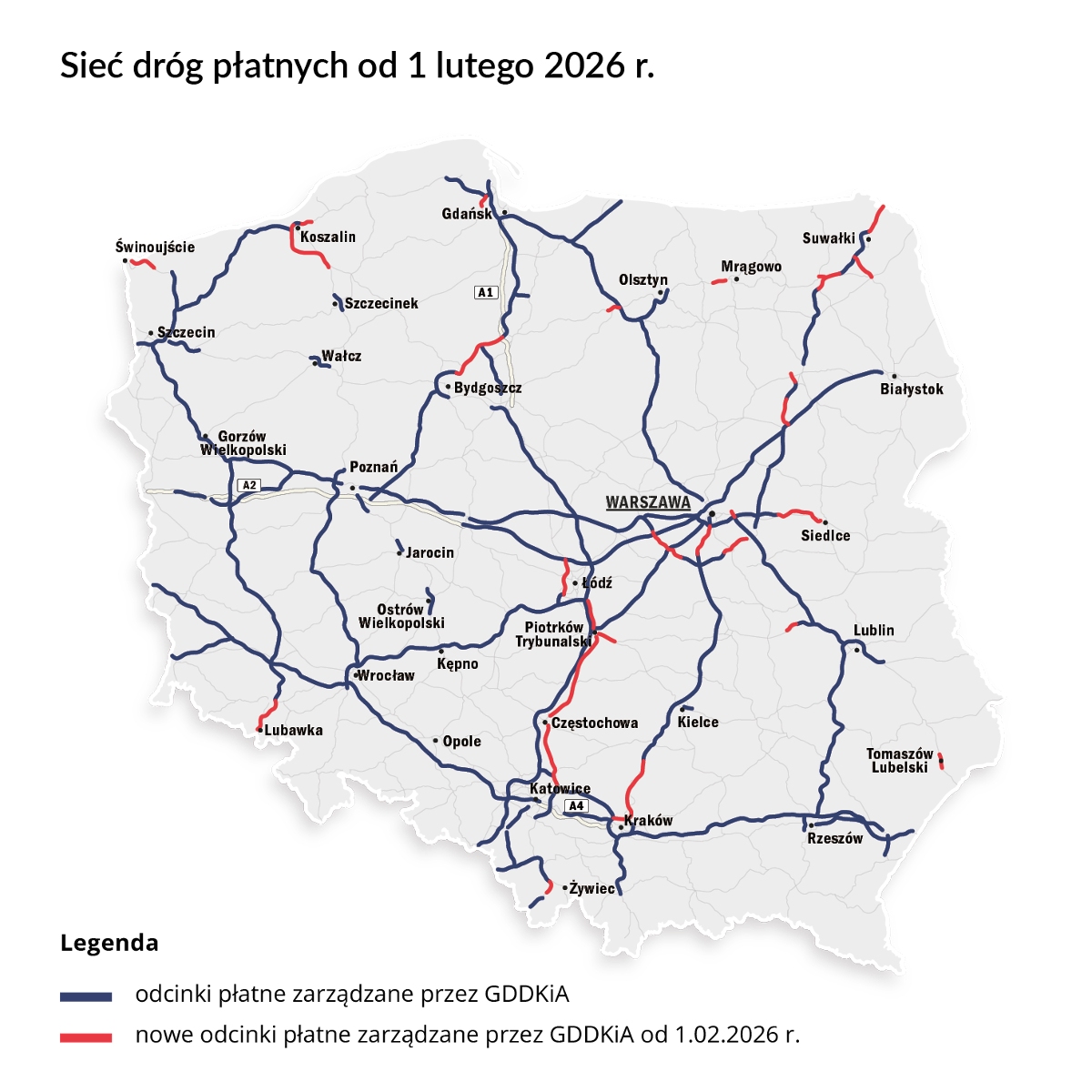 Od 1. února 2026 se systém e-TOLL v Polsku výrazně rozšíří a bude zahrnovat 645 km nových zpoplatněných úseků silnic (především rychlostních silnic), čímž se jejich celková délka zvýší na přibližně 5 869 km. Sazby elektronického mýtného pro vozidla nad 3,5 tuny se také zvýší přibližně o 40–42 %. Tyto změny se týkají těžkých vozidel a autobusů.