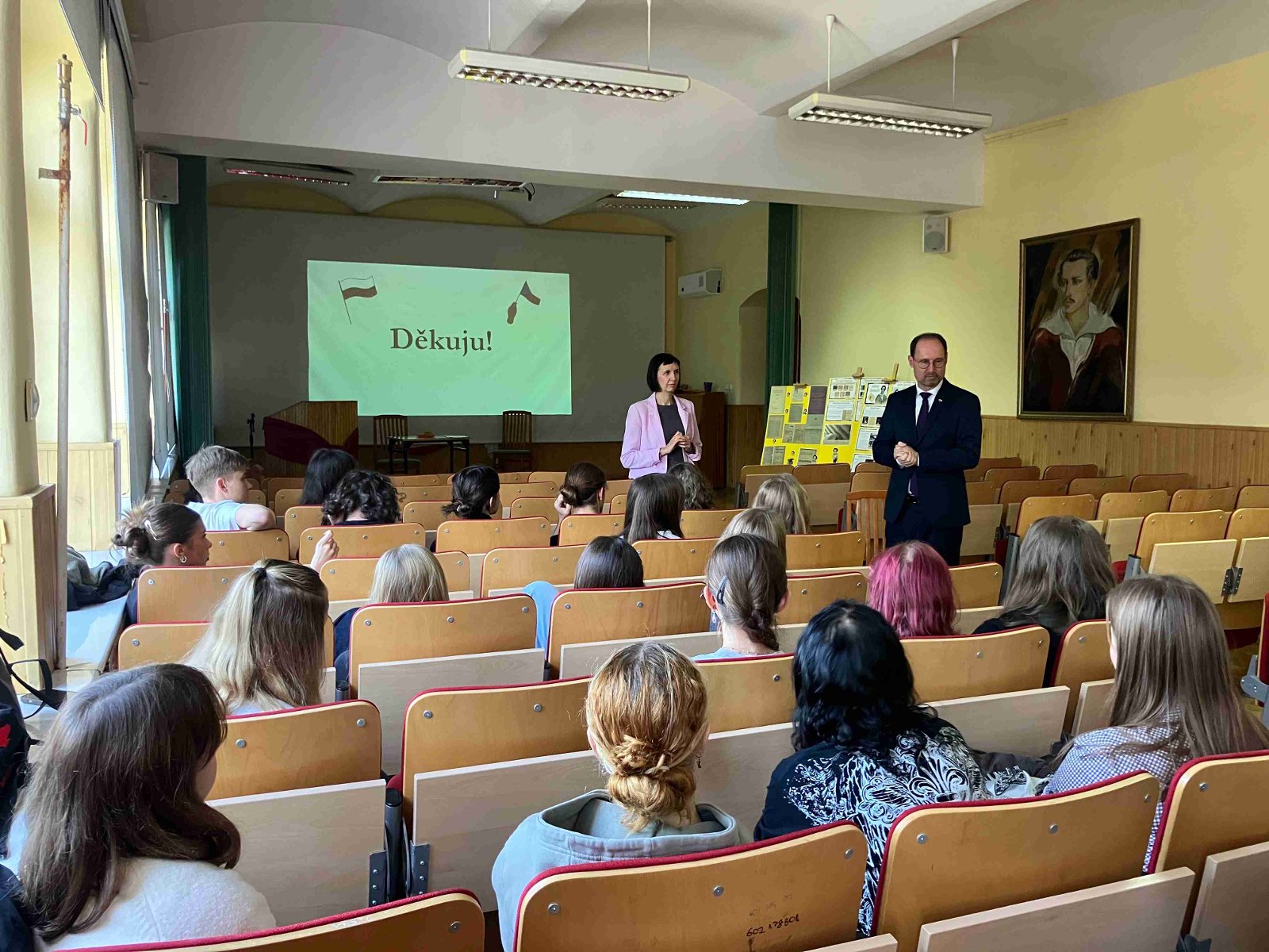 W miejscowym IX Liceum Ogólnokształcącym im. Juliusza Słowackiego język czeski jest nauczany jako jeden z fakultatywnych języków obcych – od nieco krótszego czasu, ale z równie dużym entuzjazmem i znakomitymi rezultatami, co było widoczne podczas przedstawienia pt. „Fałszywi przyjaciele tłumacza”, które uczniowie klasy czwartej zaprezentowali panu ambasadorowi.