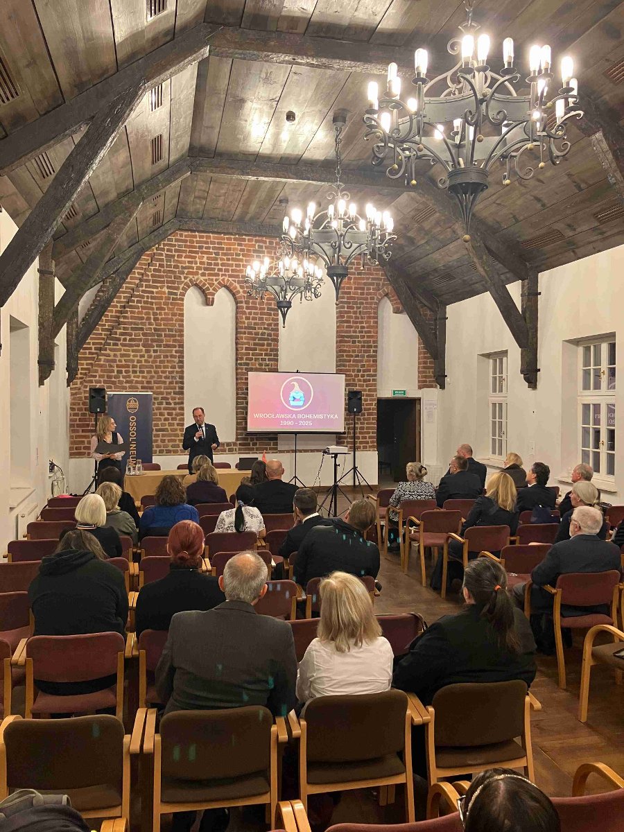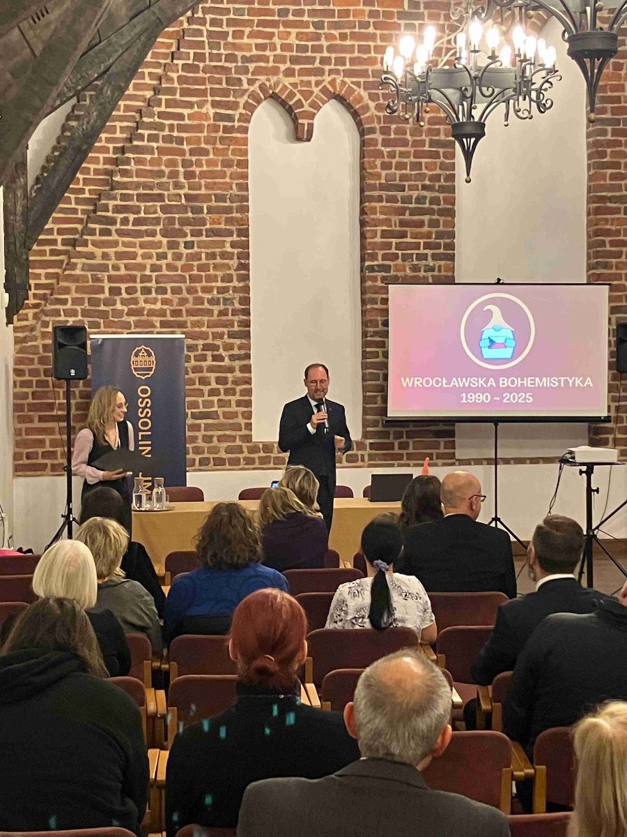 Polsko-czeska interdyscyplinarna konferencja naukowa „Wrocław w Czechach – Czesi we Wrocławiu” została przygotowana przez bohemistów z Instytutu Filologii Słowiańskiej Katedry Neofilologii Uniwersytetu Wrocławskiego we współpracy z Zakładem Narodowym im. Ossolińskich oraz przy wsparciu Ambasady Republiki Czeskiej w Warszawie, z okazji 35-lecia istnienia bohemistyki na Uniwersytecie Wrocławskim.